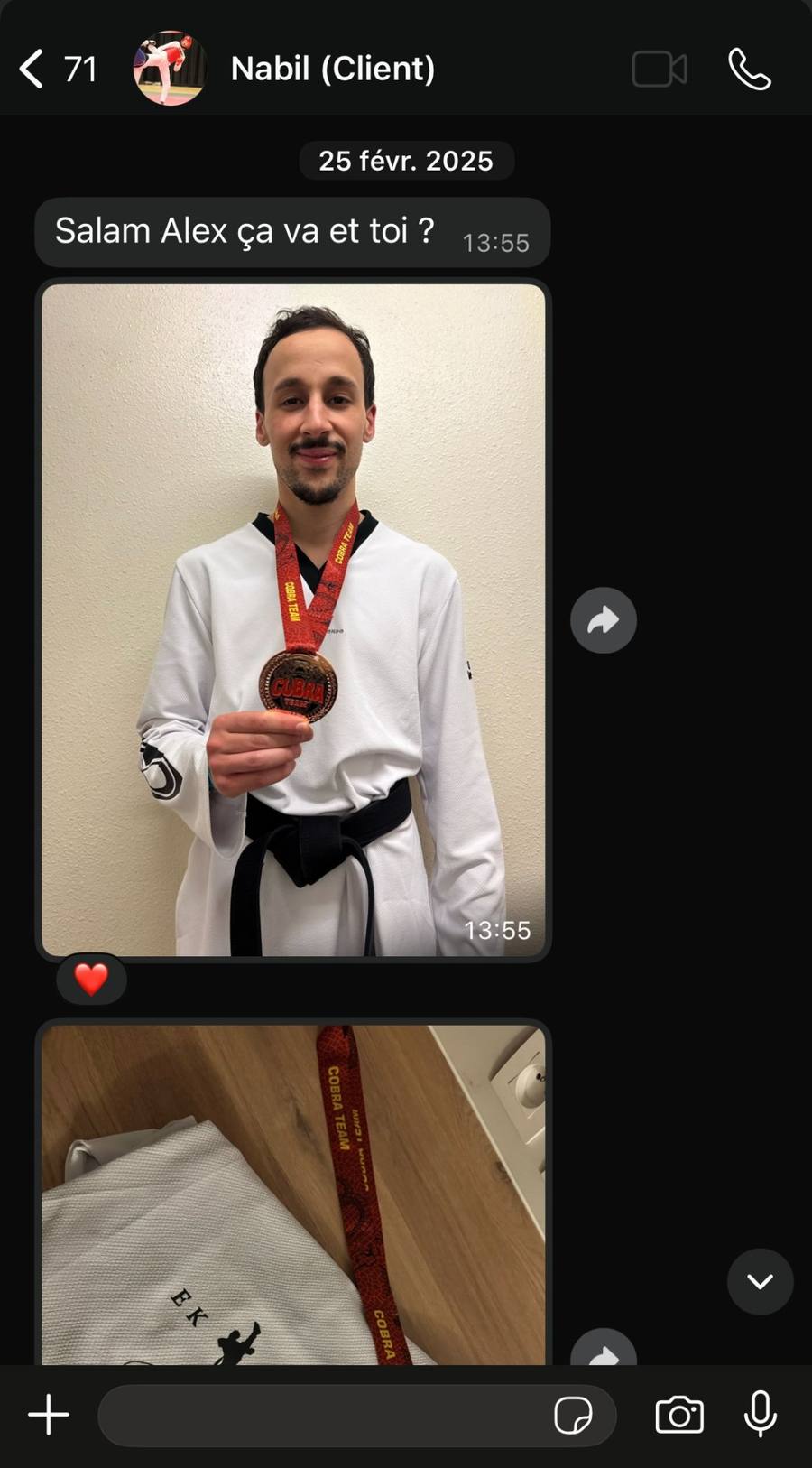 "Je ne t'enseigne pas la théorie. Je t'enseigne ce que j'applique avant chaque compétition."